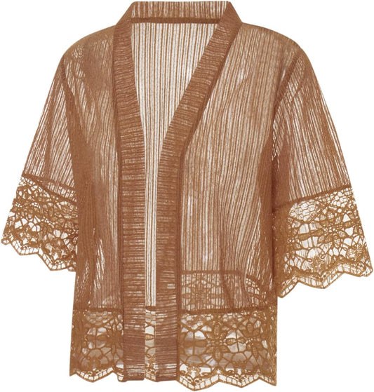Lace Sheer Cardigan Short Sleeve Ruffle Open Front Tops for Women