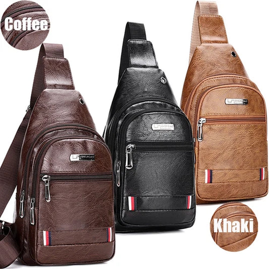 Mens Backpack Leather Sling Bag Chest Shoulder Fanny Pack Crossbody Sport Travel