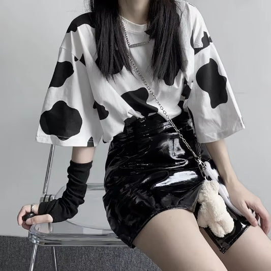 Harajuku Tees Fashion Harajuku T-Shirt Woman Tshirts Cow Print Oversized Casual Loose Short Sleeve T-Shirt Streetwear Tops