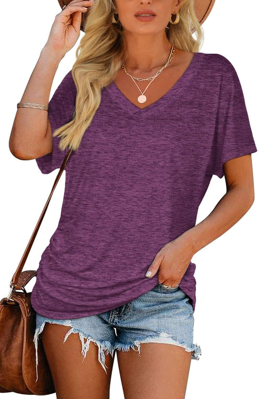 Womens Short Sleeve V Neck Dolman Tops with Side Shirring Loose Fit Shirts
